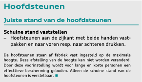 Tip: stel de hoofdsteun af in je normale zitpositie (rug tegen de leuning, gordel om).